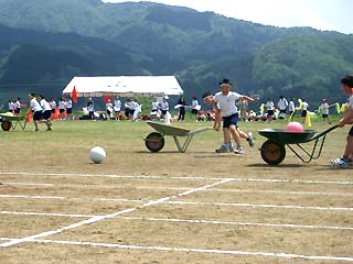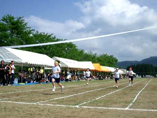 NO.191 田舎の運動会〜♪ (05/5/28)昨夜の雷とドシャブリの雨で心配した地元小学校の今日の運動会ですが、晴天に恵まれ、日焼けを気にしつつ、若い父兄の方や孫の応援に来た方達に混ざって応援してきました♪。 知り合いの子供が走ると我が子を応援しているが如く大きな声を張り上げ、久しぶりに、?十年前の記憶が蘇り、楽しい一日(特に給食タイム〜^-^;)を過ごしてきました〜♪下の画像は、景色の良い小学校のグランドです。 右下のテントの後ろは桜並木です♪ 主人もこのグランドで子供の頃走っていたそうですよ〜。 足の速さは??(^_-)-☆ ![]() ![]()