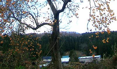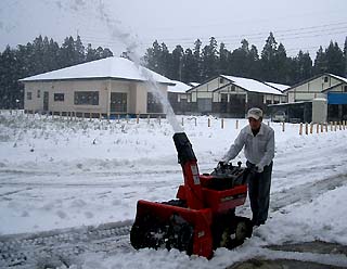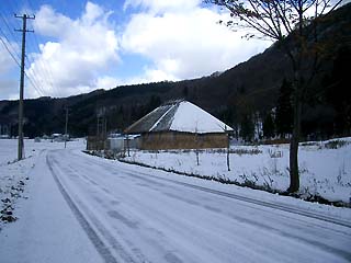 良く見かける風景ですが、鈴なりの渋柿が地面すれすれまで垂れ下がって重そうに生っています。 空き家の場合が多いのですが、住んでいても放置したままの鈴なりの柿の木をよく見かけます。 干し柿にすると体にも良いし、美味しいのにね〜(^-^;) 同じ鳥海町でも、この画像の百宅地区は雪が多いところです。 我が家の近辺では、まだ銀世界?は見られません(^-^;) そうそう、12月〜1月は 脳卒中が多い季節なんですよね〜。 帰宅したら、血管を丈夫にするような食生活を気にしながら生活をした方が良いと「みのさんの“おもいっきりテレビ”」で話していました。 ある日突然倒れるなんて嫌ですから、本当に気をつけたいですね(^_-)-☆ (参考:文字に下線があるのはリンクしています。クリックして参考にしてくださいませ〜(^_-)-☆) NO.234 初積雪♪(^-^;) (05/12/4)今朝目が覚めると、この冬初めての銀世界にうっとり〜♪ところが、我が家の周りでは初積雪でしたので、相棒が除雪機の試運転をしてしまいました(^-^;)。 積雪と言っても10センチ足らずなのに・・・(^-^;)。 本当は、 ママダンプでの除雪を楽しみにしていたんですよ〜(~=~;) 運動不足解消には、有難い積雪ですからね(^_-)-☆ この画像は、車庫前から撮りました。 バックの景色に写っている建築中の家は、まもなく完成予定で、定年後、横浜からUターンされる方のお家です♪ 誰かさんと同じで、田舎暮らしに憧れているそうですよ(^_-)-☆ NO.235 雪の花♪ (05/12/7) 雪国の楽しみを味わえるひとつに、木に咲いた雪の花が見られることですね♪(^_-)-☆ 昨夜から降ったと思われる雪が、今朝、我が家の庭の果樹に積もり、大好きな雪の花を咲かせていました(^-^;)。 日中になると溶けてしまうので、朝7時頃、記念?に撮ってみましたが、この木は背が高いので冬囲いをしていないため、リビングから雪の花を眺めることが出来ます♪ ところで、雪国に住んでいると、除雪の大変さが嫌われ、住みたくないと言う話はよく聞きます(^-^;)。 私が「除雪作業が好き」なんて言うと、変人扱いされるかも?(^_-)-☆ でも、家に閉じこもりがちになりそうな冬の生活で、除雪作業はご近所との交流の場になったりします♪ 精神衛生や体力づくりの面でも健康的なので、神様から与えられたプレゼントかも知れませんね〜(^_-)-☆ さぁ〜、今年も除雪ボランテァに精を出して頑張らなくっちゃ〜〜♪ NO.236 寒波と大雪 (05/12/15) 全国的に寒波と、日本海側は大雪がやって来ましたね。 このような大雪の景色は1月に入らなければ見られない景色です。我が家の回りも、積雪1メートル位になりました。NO.234に載せた画像と 同じ場所から撮ったのですが、こんなにも景色が変わりました(^-^;)。 (撮影:15日13:00頃 つかの間の晴れ間に撮影) ところで、先週末は横浜や東京にいましたが、人出の多さに酔ってしまいました(^-^;) サラリーマンは丁度ボーナスも出たばかりでしたし、お歳暮や自分へのプレゼント?で、何処に行っても人、人、人〜〜(@@;)。 いつの間にか、すっかり田舎の空気に馴染んでしまった私は、最初の夜はホテルで熱を出して・・・(^-^;)。 「翌日からの予定どうしよう〜」と思いながらも、グッスリ眠ってしまったら、翌朝はすっかり熱も下がり、元気な自分に戻っていたので、予定通りの行動も無事終えホテルに到着♪ (情けないやら、嬉しいやら〜) この冬、新型インフルエンザが心配されていますね。 もし流行したら数万人から数十万人が亡くなるとか・・・。うがい、手洗い、マスク・・・免疫力もつけなくっちゃ〜〜(^-^;) 元気だと言える自信も、そろそろ年には勝てないかも?(^_-)-☆ NO.237 寒波と大雪 (NO.2) (05/12/18)今日から明日にかけて、この冬一番の寒波とのこと。 この寒波にもかかわらず、フラダンスの教習を受け、午前、午後と一日ががりのレッスンに、汗ビッショリ〜〜(^-^;)。今日のレッスンに風邪をひいて休んだ人や、見学だけという人もいたので、帰りの寒波が気になりつつ帰宅。 本当に急に晴れたり、吹雪いたり・・・と、荒れまくっています(^-^;)。 この画像は、我が家が入った除雪風景を、初めてご紹介します(^-^;)。(撮影:16日のAM9時半頃)この時で、1メートルはたっぷりありましたが、遠くからの撮影のせいか、豪雪には見えないかしら?(^-^;) でも、今日はもっと凄いですよ〜(^-^;)。 ですが、市の除雪車がマメに来て下さるので、本当に有難いです♪ (チョッと、鳥海情報でした^-^;) NO.238 ビタミン愛? (05/12/23)明日はクリスマス・イブ♪ ワインを用意して、手作りケーキを並べちょっとした甘い気分に浸りたいと思う方も多いかも?(^_-)-☆。とっても大切な事ですよね。 幾つになっても忘れたくないのが、甘い気分だと思うのですが、本当に大切なことだと思います。 「いい年して、今更〜」なんて思うと、早く老けちゃいますよ〜。如何かしら?(^-^;) 明日は、ビタミン愛を注入?して、手作りケーキも・・・と思っています♪ 昨年の NO.158 ビタミン愛よりどうなるか? 密かに