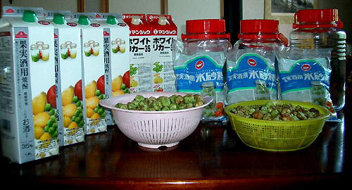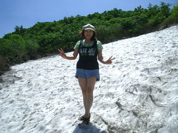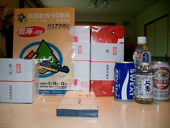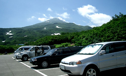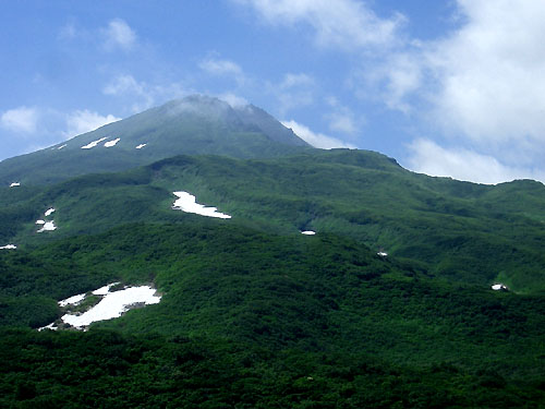 初心者用に少し甘めで口当たりも良く、疲れたときの食前酒として時々飲用してます♪ 昨年のマタタビ酒の残りも比較用として並べてみました〜♪(3ヶ月位で琥珀色になります) (撮影場所:和室 撮影時間:午前9時半頃) 果実にマタタビミタマカが産卵して発育した果実の方が、薬効効果が高いと云われていますが、我家が採取したのは、ミヤママタタビです♪ (全て、ボコボコだから〜〜(^_-)-☆) マタタビの語源には、「峠道にさしかかった旅人が、マタタビの実を食べて元気を取り戻し、また旅が続けられた」 という説もあります。 同属植物には、サルナシ、ミヤママタタビ、キウィフルーツ等の果実も精力がつくそうですよ♪ マタタビの効用には、疲労回復、滋養強壮、冷え症、腰痛、 胃腸の虚弱な人の健胃薬、がん・かぜ予防、精神安定などがあるそうです。 “猫にマタタビ”っで有名ですよね〜。漬け込んだ後のマタタビの実を、ネコにやるととても喜ぶそうです。 漬ける前の実でも喜ぶそうですが、喜び方が全然違うとか?(^_-)-☆ (“我家は主人にマタタビ〜”うふ♪(* ̄ー ̄)v) (参考:乾燥マタタビ100グラム1000円位で売っているようです。。。お高いですねぇ〜~=~;) 追伸:珍酒飲んでみたいと思われた方、遊びに来て下さいませ〜♪ 一緒に乾杯しましょう〜♪ NO.309 涼しさ求めて鳥海山へ♪ (06/8/4)一昨日、東北にもやっと梅雨明け宣言が出たとたん、秋田もすっかり暑くなりました。 やっぱり夏は暑くなくっちゃ〜〜(^_-)-☆ところで、今月1日から原油高騰の影響で、ガソリンも大幅の値上げとか。。。 ささやかな抵抗として7月31日、2台の車に満タン給油しましたが、 今度の給油ではリッターいくらの値上げに?? レギュラーで140円以上とかって?? ハイオクは?? 子供たちも夏休みに入り、懐が寒い季節になりそうですね。。。┐('〜`;)┌ ![]() あ〜〜、暗いニュースは又も横に置いといて。。。 梅雨明けした青い空に誘われ、昨日は近場の仁賀保高原、今日は地元の鳥海山5合目までドライブして来ました♪ ここは、鳥海山5合目の展望台から、少し望遠で撮った画像です。 雲の切れ間を狙いながら、山の気温の低さに、 思わず「寒い〜〜」って言ってしまいました〜(^-^;) (撮影時間:午前10時頃) 同じく展望台から、仁賀保高原の風車が見えます♪ 今、全国的にも、地球温暖化対策に風力発電所が随分増えていますよね〜♪ もっともっと、世界中で温暖化対策に力を入れて欲しい。。。 ![]() 登山なんてする気がなかったのに、5合目祓川の竜ヶ原湿原を一周、山歩きすることに。。。 雪渓も何とサンダル姿で歩いてしまいました〜(^-^;) たまたま、出会ったご夫婦に、「鳥海山、興奮するよ〜」ですって〜(^_-)-☆ アハハ〜 ![]() ![]() ![]() 鳥海山の頂上は、七高山と新山という二つの山が、ラクダのコブみたいになっています。 仁賀保から見ると見えますが、ここからは見えません。。 先日NHKのBS2で 「あなたが選ぶ想い出の名山ベスト50」に何と7位に選ばれていました〜♪ 地元に住む者にとっては、嬉しい番組でした〜(^_-)-☆ ![]() 5合目の駐車場から鳥海山を撮りましたが、ワイドなので実際はもっと近く見えます。 金曜日なのに車20数台もあり、殆どが県外でした。 西は岡山ナンバー。東京・練馬ナンバー、群馬、山形、宮城。。。そっか〜、夏休みだもんね〜♪ (撮影時間:午前11時半頃) NO.310 忙しくも、楽しかった一日♪ (06/8/7)毎年お盆前に行う部落の草刈が、男女総勢20名余りが昨日の早朝6時から8時まで実施。まだ、霞がかかった涼しい時間帯なのに、 皆さん汗ビッショリ掻きながらの作業でしたが、終了後はお茶やスイカを食べながら、井戸端会議に花盛り〜♪ ![]() ![]() ところが、ついでに我家の庭の崖部分も草刈しようということになり、またまた、汗ビッショリ〜〜!! 「もう、体脂肪無くなっちゃう〜〜」と思いたいくらいでしたが、現実は。。。たっぷり〜〜(~=~;) 売りたい位たくさん貯蔵してますので、誰か買ってくださ〜〜い!( ̄。 ̄;) 午後はきんぎょが楽しみにしていた、由利原高原・夏祭り「キム・ヨンジャの野外コンサート」を観に行って来ました♪