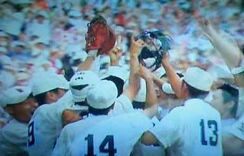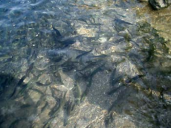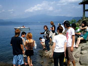 NO.311 お盆はお墓参りだけど・・・(^-^;) (06/8/13)我家のお墓は東京・町田市に住んでいた時に建てたので、すっかり遠くなってしまいました(~=~;)それでもせめて年一回だけは、毎年必ず秋にお参りすることにしてます。 息子夫婦や親族にも逢えるし、懐かしい友人にも逢ったりするので、楽しみの一つです♪ 突然今朝、田沢湖・乳頭温泉に行こうという話になり、好みの温泉は色々あるなか、今日は黒湯に決定♪ 泉質は硫黄、色は乳白色、そして混浴露天風呂〜〜(^-^;) ![]() ![]() 和やかな雰囲気が大好きな我が夫婦は、愛知県から来られた人とか、県内の人などと、楽しいひとときを過ごして来ました♪ 秋田に引っ越して来た理由の一つに、近場に温泉がたくさんあるからかも?(^_-)-☆ ![]() ![]() ↑は田沢湖伝説の竜子姫の銅像バックに記念撮影している人達♪ 見えない左端にはカメラマンがたくさん居ます(^_-)-☆ ↓は田沢湖って酸性が強く、美しい青い湖ですが、魚が住めない時期があったと聞いていたのに、今日は何と魚(多分ハヤだと思います)の大群にビックリしました〜@@;) 右下は足元まで来たハヤです。 黒い影はカメラマンですね〜(^_-)-☆ ![]() ![]() 田沢湖や乳頭温泉まで往復250キロ。今朝出かける前に、地元JAスタンドで値上げしてから初めてハイオク入れたら152円でした。全国平気からみると安いのかな? でも、凄い値上げだね〜(~=~;) ご参考までに、レギュラーは142円です。 NO.312 蜂に刺されたら? (06/8/14)昨日、今日と何故か虫に好かれています・・・(^-^;) 昨日は露天風呂で、アブに左胸をチクッと刺され、 今日は、クズの花が沢山咲いていたのでデジカメ撮影してたら、左手親指の付け根をジクッと刺されてしまった・・・( ̄へ ̄|||) もう、ドジなんだから・・・・('〜`;)「痛〜〜!!」 全くの初体験です(~=~;) スズメバチならショック死? とりあえず、口で毒液を吸っては吐き出し、吸っては吐き出しすること数回。 今日はお盆で病院も休み。 近くの薬局で、ステロイドを含有したかゆみ止め軟膏(ステロイド軟膏)を塗って様子を見ることにしました。 夕方には「あれ〜? 腫れも大分引いてきたし、痺れも大分治まってきたみたい・・」 何の蜂に刺されたのか?? コロッと太った蜂みたいでしたが・・・?? マクロ撮影のクズの画像はこちらでご覧くださいますか?(^-^;) ![]() ![]() とにかく甘い花には、蜂が寄って来ています。 甘い果物にも蜂がいます。 くれぐれも、お気をつけ下さいませ〜(^-^;) NO.313 連日猛暑の秋田県 (*^-゜)v♪ (06/8/17)8月に入ってやっと梅雨が明けたと思ったら、連日猛暑が続く秋田県。 連続真夏日も2週間くらい続いている気がしますが、今日は特別35〜6度もあるようです(@@;) 本当に、ここは東北?(^-^;)![]() でも、夏はやはり暑くなくっちゃ〜(^-^;) 稲作農家の人も、この暑さで作物の生育が順調で、喜んでいると思います♪ 昨日、我家で作ったスイカを試食してみましたが、何と甘いこと〜! 「甘〜〜♪♪ 売ってるスイカと同じだぁ〜♪」と大満足! 太陽の恵みですね♪ 真っ青な青空に誘われ、地元の温泉(ホテル・フォレスタ鳥海)に行ってみました。 我家から、車で15分位で行かれる温泉ホテルですが、あちこち回って10時半ころ到着。お盆が終わって一息ついた ホテル内は静かでしたね〜(^-^;)。 ![]() ![]() 残雪の鳥海山を眺めながら、県内から来られていた奥様とお喋りしつつ、ノンビリお湯に浸ること40分♪ アブなんか居ませんでしたよ〜(^-^;) この画像は、人が居なくなったのを見計らって、露天風呂の一部と鳥海山を撮ってみました♪ 残雪は雲や木の陰に隠れてて、よく見えませんね〜(^-^;) 休憩室では、準々決勝、駒大苫小牧と東洋大姫路の熱戦が・・・・「あ、姫路が勝ってる〜〜」と思いながら結果は、何と5:4、逆転を守りきって駒大苫小牧が底力を出した♪ あ〜、2年前、初めて真紅の優勝旗が海を渡って北海道に行った時の興奮が甦ってきた・・(^_-)-☆ NO.314 熱闘甲子園、素晴らしい感動有難う♪ (06/8/21) 凄かったですね〜♪ 本当に最後の最後まで,歴史に残る熱闘甲子園!クールで男らしい斎藤投手も、最後に駒大苫小牧の田中投手を押さえ、早実勝利が決まった後の涙! 本当に美しく、清々しい涙。。。。。 今までの努力が、張り詰めていた気持ちが溶け、込み上げてきたのでしょうね〜。 道産子きんぎょとしては、又真紅の優勝旗が海を渡って欲しいと応援しつつも、早実の初優勝も願いつつ、複雑な気持ち・・・。 準優勝の駒大苫小牧も本当に立派でした。 投手の田中さんは、兵庫県伊丹市出身とのこと。道産子ではありませんが、2度も北海道に優勝旗を運んでくれた感動に、大感謝です。 又、早実の投手、斉藤さんは群馬県(現、太田市)出身とか。 本当にお互い素晴らしいピッチャーで、今後の将来が楽しみです♪ 特に斉藤さんは甲子園で7試合(初記録)全て一人で投げきりました!!!凄いスタミナ!! それも、9回ツーアウトで投手田中さんに投じた106球目のストレートは、本日最速の147キロです