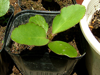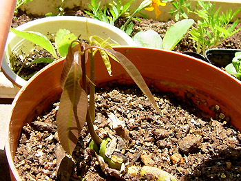 NO.416 ハッピー・ハッピーのその後 (07/6/17)今日も快晴の青空です。 朝から気温が上がり、暑い一日になりそう〜(-_-;) 空梅雨にならないよう、適当な水量が欲しいところですが、今年はどうなるのかしら??チョッとご紹介したい植物が2つあります〜(^-^;) 昨年、義妹から頂いた「ハッピー・ハッピー」の葉っぱですが、芽は出たものの、冬季間は全く成長が止まってしまった感じでした(^-^;) 春に小さい芽を植え替えたら、今は、ご覧のように↓5センチ位の葉っぱに成長しています♪ 7本しか育ててませんが、いづれ、どんな花が咲くのか楽しみです〜♪ ![]() ![]() ![]() それと、もうひとつは マンゴーの種を植えた(4/23) のですが、その後、なかなか芽を出さず、調べたら腐ってました(-_-;) 又、懲りもせず1ケ月後、食べた後の種を1個だけ植えたら、何と赤っぽい葉が2本も出ましたよ〜♪ 今は7センチ位ですが、この夏どのくらい成長するのか楽しみ〜(^^♪ 面白いと共感された方、真似してみます?(^-^;) |